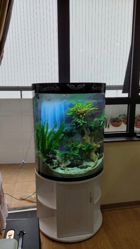 Bể cá uốn cong nghệ thuật – Đường cong không gian sống hiện đại